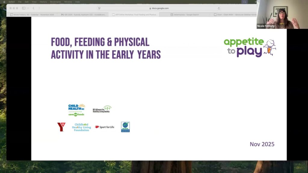 In this workshop Nicole Fetterly, Lead Trainer at Appetite to Play will enhance your knowledge, skills and confidence in creating childcare settings that support physical literacy, healthy eating and healthy child development. Planning tools, self-assessments, recipes, games and activities will be shared. An overview of the resource-rich Appetite to Play website will be included.