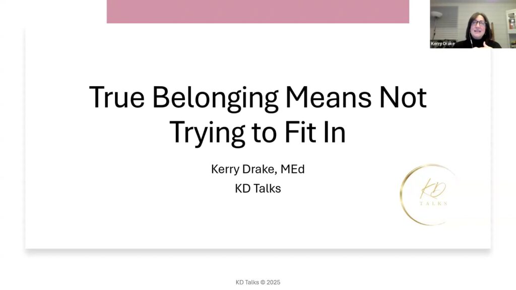 Led by Kerry Drake of KD Talks, this workshop looks at the shift from “fitting in” to truly belonging. Drawing on research from thought leaders like Brené Brown, participants will reflect on identity, authenticity, and courage, and learn how to create spaces where children and adults feel seen, valued, and free to be themselves.